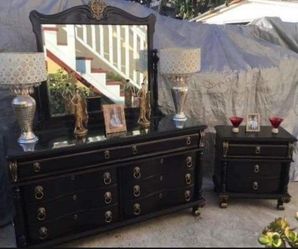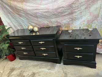 Black Dresser Set Including Long Dresser, Mirror, Nightstand Set Has Been Refurbished Looks Beautiful $490San Diego, CA