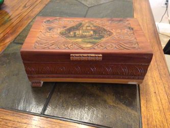 Vintage Carved Wood Footed Trinket Box Cottage Scene Large Rose Pattern $15Sun City, AZ