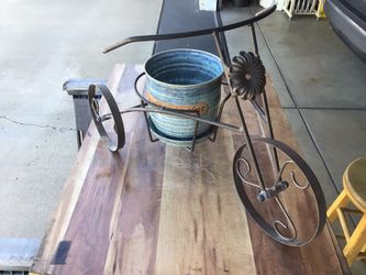 26” Long Rustic Wrought Iron Tricycle Plant Stand & 7” Ceramic Planter With Attached Sauce.$50Sun City, AZ