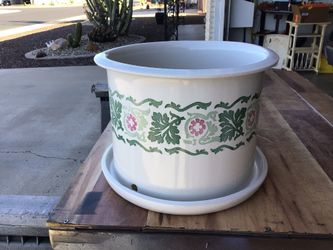 Vintage 8” Stoneware Glazed Planter And Attached Sauce - Floral Pattern $20Sun City, AZ