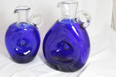 Vintage Hand Blown Art Glass Cobalt Blue Pinched Pitcher Applied Handle$75Houston, TX