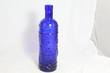 Large Vintage Cobalt Blue Glass Bottle With Grape Vine Design$25Houston, TX