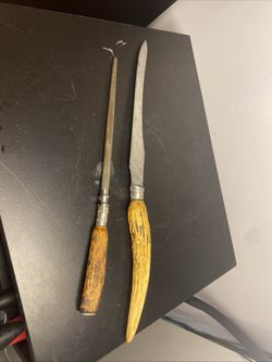 Antique Early 1800's JOSEPH ELLIOT & SONS Sheffield STAG HANDLE Carving Set$75Fort Lauderdale, FL
