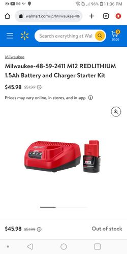 Milwaukee 48-59-2411 M12 REDLITHIUM 1.5Ah Battery and Charger Starter Kit$39Doraville, GA