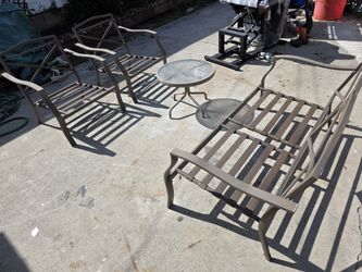 4-piece metal patio furniture set, featuring a sofa, two chairs, and a glass-topped coffee table$100La Mirada, CA
