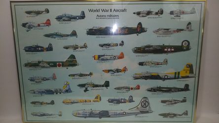 Aircraft Of WW II , large Metal Frame 26"x38", Man cave Or Aircraft Enthusiast/pilot$40Houston, TX