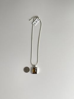 Elegant Silver Chain Necklace with Amber Rectangular Gem Pendant$30Jupiter Point, CT