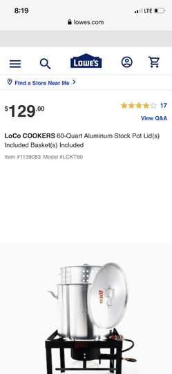 LoCo COOKERS 60-Quart Aluminum Stock Pot Lid(s) Included Basket(s) Included$100Cypress, TX