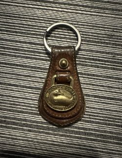 Dooney & Bourke All Weather Brown Leather Brass Duck Key Ring Fob Chain Vintage $20Morton Grove, IL