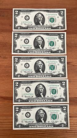 5 Consecutive $2 Bills. Uncirculated $35Huntington Beach, CA