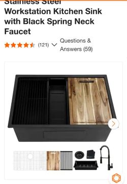 30 in. Undermount Single Bowl 18 Gauge Black Stainless Steel Workstation Kitchen Sink with Black Spring Neck Faucet