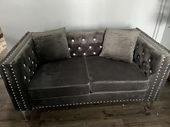 (2) Gray Velvet Studded Sofa$700Westerville, OH