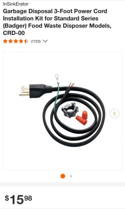 Garbage Disposal 3-Foot Power Cord Installation Kit for Standard Series (Badger) Food Waste Disposer Models,$10Los Angeles, CA