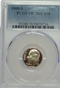🔥 PR70DCAM 🔥 1999-S PCGS Roosevelt Dime PR70DCAM #711 Transparent Pricing$16Galveston, TX