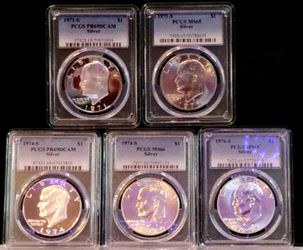 5 Coin PCGS--$1 Silver Ike Eisenhower Dollars-Mixed Years, Mixed Grades$225Oak Point, TX
