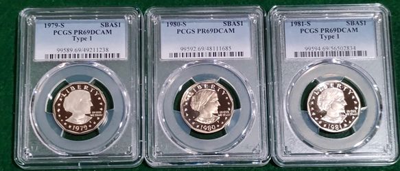 3 Coin PR69DCAM PCGS Susan B Anthony Set -79, 80, 81$70Oak Point, TX