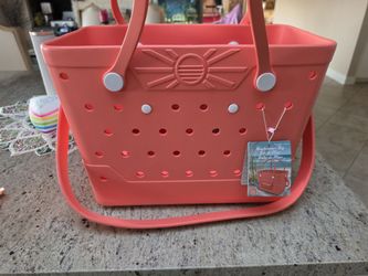 Large Beachcomber Vinyl Washable Tote Bag in Coral Pink$40Simi Valley, CA