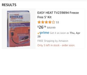 EASY HEAT TV239894 Freeze Free 5' Kit$30Baltimore, MD