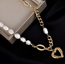 18k gold plated pearl heart pendant women necklace$30Redlands, CA
