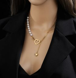 18k gold plated necklace pearl love heart pendant for women$30Redlands, CA