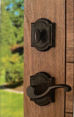 Baldwin Reserve Adirondack Single Cylinder Dark Bronze Door Handleset With Arch Right Handed Door Lever And Rustic Arch Rose $100Redlands, CA