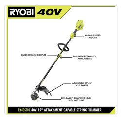 Ryobi 40v String Trimmer w/4.0 Ah Battery & Charger $120West Covina, CA