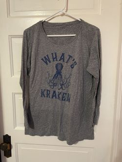 Grey What’s Kraken graphic long sleeve Tshirt X-Large$5Aurora, IL