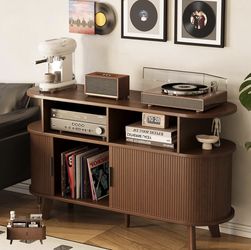 Record Player Stand, Midcentury Modern Furniture Turntable Stand with Sliding Doors, Audio-Video Shelving Cabinet, Fluted Media Stand and TV Stand for$199Mckinney, TX