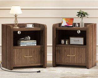 New Night Stand with Charger Station, Fluted Nightstands Set of 2 with Drawer, Modern Bedside Table Set of 2, Wide Nightstands for Bedroom, Mid Centur$199Mckinney, TX