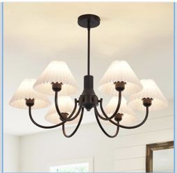 New Modern Black Chandelier,6-Ligh Farmhouse Chandelier for Dining Room,Mid Century Hanging Lighting Fixture with White Pleated Fabric Shades for Livi$165Mckinney, TX