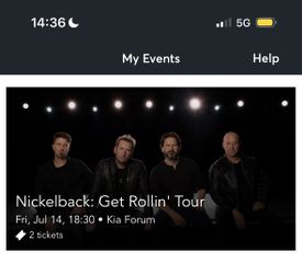 NICKELBACK TICKETS$70Los Angeles, CA