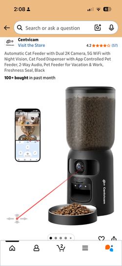 Automatic Cat Feeder with Dual 2K Camera, 5G WiFi with Night Vision, Cat Food Dispenser with App Con$50Chula Vista, CA