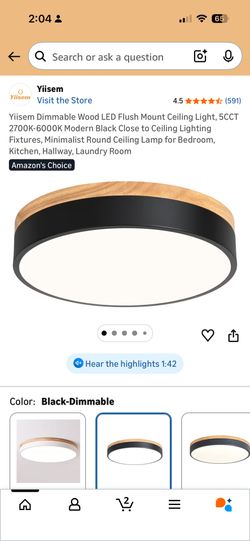 Yiisem Dimmable Wood LED Flush Mount Ceiling Light, 5CCT 2700K-6000K Modern Black Close to Ceiling $30Chula Vista, CA