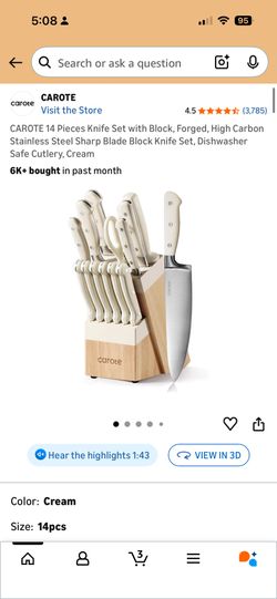 CAROTE 14 Pieces Knife Set with Block, Forged, High Carbon Stainless Steel Sharp Blade Block Knife$40Chula Vista, CA