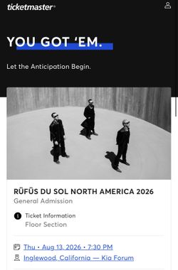 RÜFÜS DU SOL Kia Forum 8/13$299Newport Beach, CA