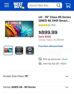 Lg QNED 85 Series 75 Inch Smart Tv$775Hamtramck, MI