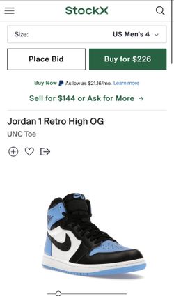 Jordan 1 UNC / Men’s Size 4 , Women’s 5.5$185San Diego, CA