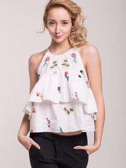 Zara Trafaluc White Floral Embroidered Tiered Tie Neck Tank Top Size Medium $25Miami, FL