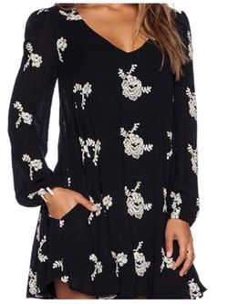 Free People Emma embroidered swing dress in black & cream Floral size XS$30Miami, FL