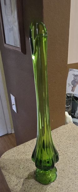 vintage L.E. Smith or Viking Glass swung vase in avocado green glass. $75Clearwater, FL