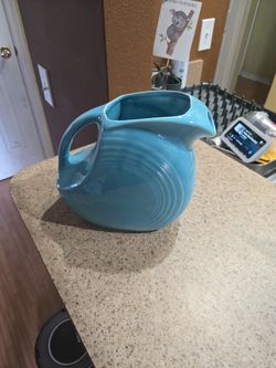 Homer Laughlin Fiesta large disk water pitcher in the turquoise glaze color. $50Clearwater, FL
