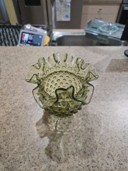 vintage Fenton Hobnail Colonial Green Ruffled Edge Vase or Rose Bowl. $20Clearwater, FL