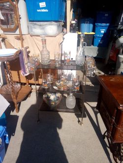 Drinks Cart With Cups Dish And Wine Bottles$40San Bernardino, CA