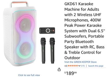 Karaoke Machine for Adults with 2 Wireless UHF Microphones, 400W Peak Power Karaoke System$50Phoenix, AZ