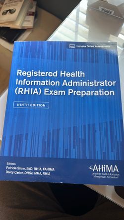 Registered Health information Administrator RHIA Exam Preparation. Ninth Edition Can $45Miami, FL