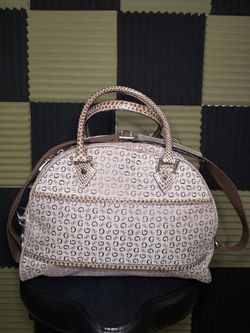 VTG GUESS Women's Tan Beige Logo Print Large Tote Trawler Duffle Bag$40Chicago, IL