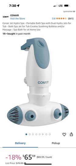 Conair Jet Hydro Spa - Portable Bath Spa with Dual Hydro Jets for Tub - Bath Spa Jet for Tub Creates Soothing Bubbles and/or Massage - Spa Bath for at$55El Cajon, CA