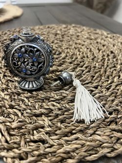 Vintage Perfume Ornate Metal Bottle &Glass Blue Stones!$30Tampa, FL