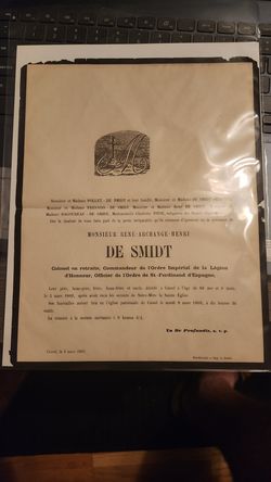 1869 French Death Notice of Retired Colonel family member (Translated)$20Charleston, SC