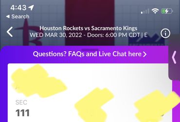 1 Houston Rockets Ticket For Sale Vs Sacramento kings Tonight 3/30/2022$25Houston, TX
